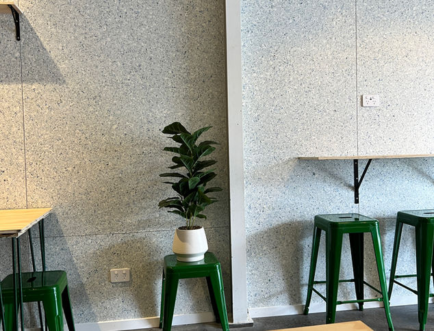 Moisture and mould resistant, they offer a sustainable, high-performing solution for commercial and industrial spaces, with colour derived from sorted consumer packaging before manufacturing.