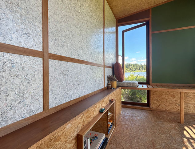 Multi-Use is a unique engineered composite panel made from 100% upcycled materials, including shredded composite packaging, wood fibre, and soft plastics commonly found on construction sites.